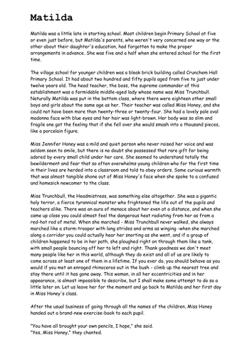 Year 6 Reading Comprehension Sats Matilda By Benserghin Teaching